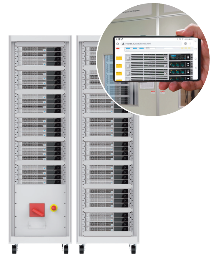 使用者需考虑具备体积小、重量轻、设备利用率高、可弹性拆装组合为多套电源系统之弹性调度及系统故障维护时间所影响研发与生产等议题,62000E系列直流电源具有主/从控制模式,可并联4台最大功率达20kW,使并联操作模式快速简易方便于研发实验室、验证单位及生产线使用。在此模式中,主机将设定数值下载数据到从属单机,此编程非常简单且使用者操作方式相同于单机模式,并联系统采用数位式均流设计具高稳定性及抗噪声干扰。