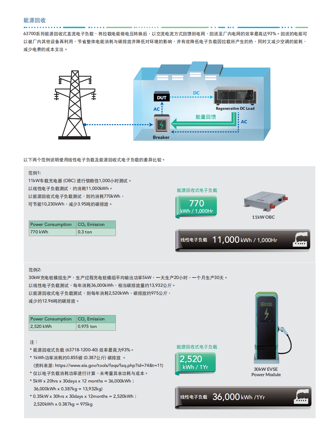 63700系列能源回收式直流电子负载,适用于电动车电池放电、燃料电池放电、大功率电源老化、直流充电桩、单向车载充电器可靠性、燃料电池发动机系统、储能系统、AC/DC与DC/DC电源供应器、功率电子元件及电力电子元件等产品信赖性测试使用。
