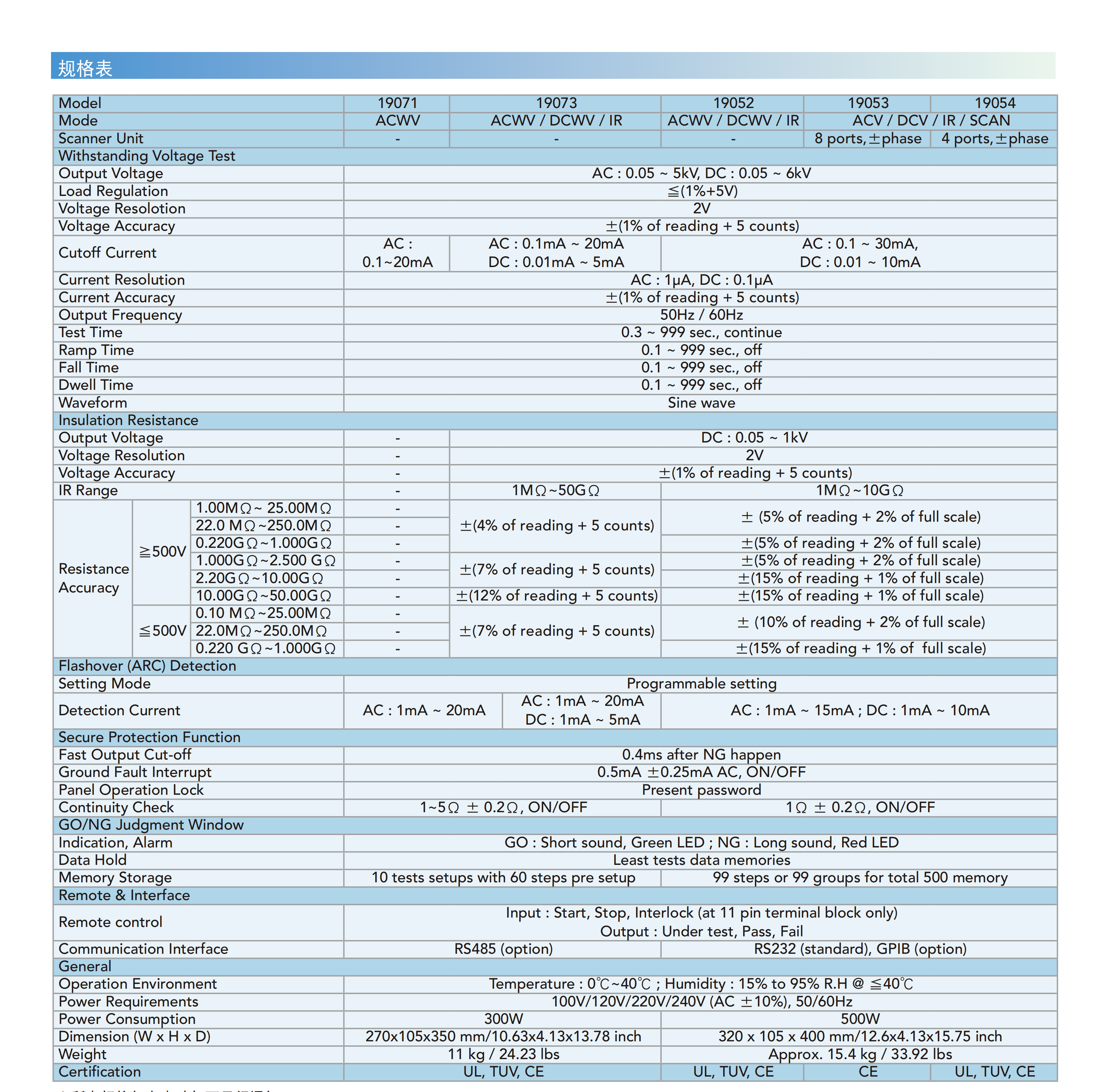 Chroma 19050系列耐压测试器采用高精度的数位硬体架构,结合电压与负载变动补偿确保测试完整性。